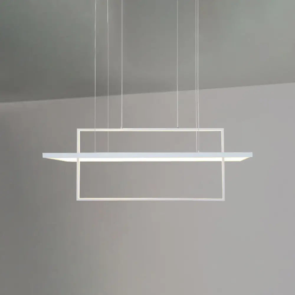 Suspension rectangulaire minimaliste à LED avec cadre blanc et luminaire en îlot en acrylique