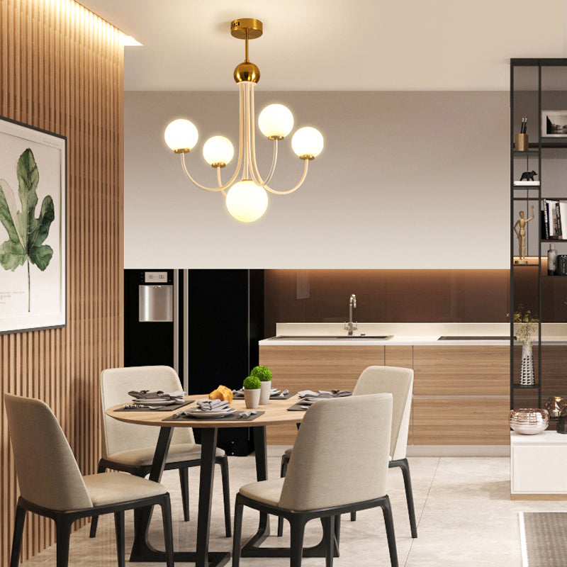 Contemporary Gold Glass Spherical Ceiling Chandelier With 5/7 Bulbs 5 /