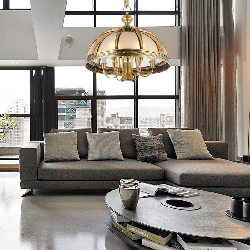 Lustre colonial en laiton : lampe suspendue à 7 ampoules pour la cuisine - 16,5"/20,5" de large