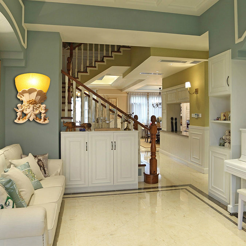 Modern Resin Angel Sconce Light Indoor Wall Mount Beige/Gold/White Finish With Yellow Glass Bowl
