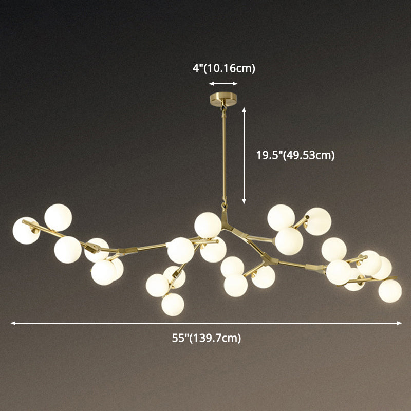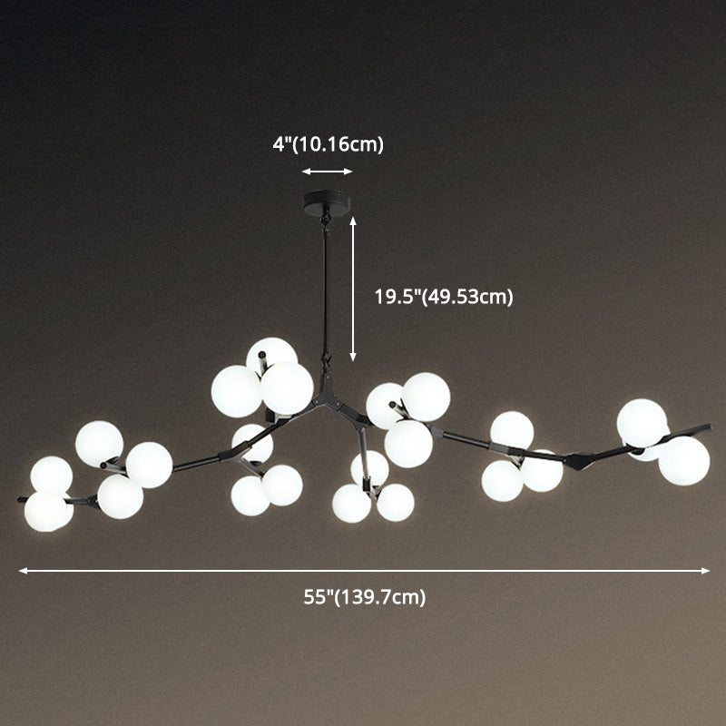 Lustre en métal élégant | Suspension minimaliste en forme de branche d'arbre avec abat-jour boule en verre blanc pour salle à manger