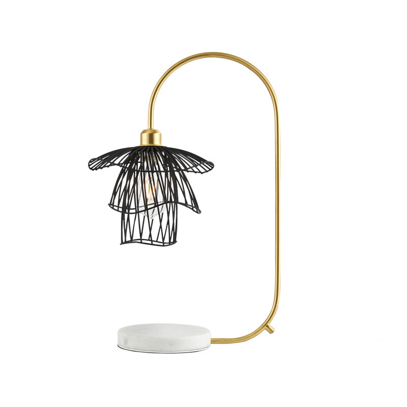 Modern 1-Light Black/White Nightstand Light With Geometric Metal Shade For Bedroom Black