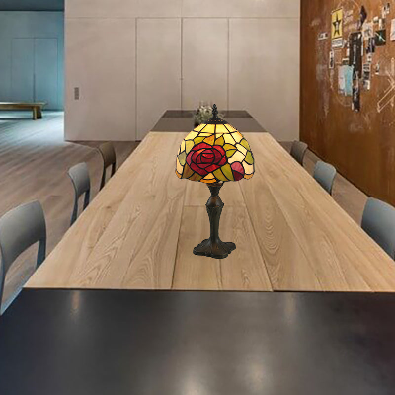 Tiffany Style Nightstand Lamp - Antique Brass Finish Stained Glass Shade