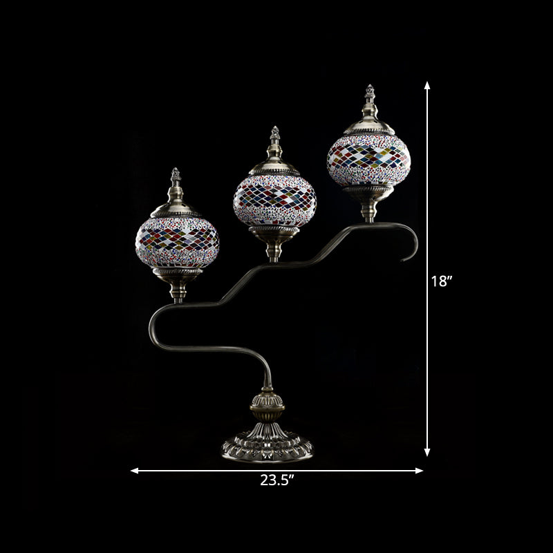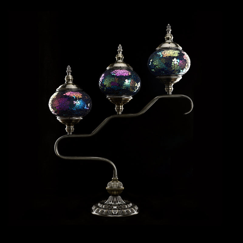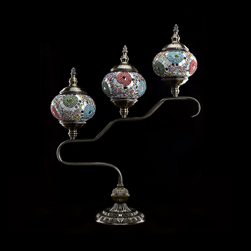 Mediterranean Stained Glass Night Light With 3 Heads - Red/Orange/Blue Tower Design Gold