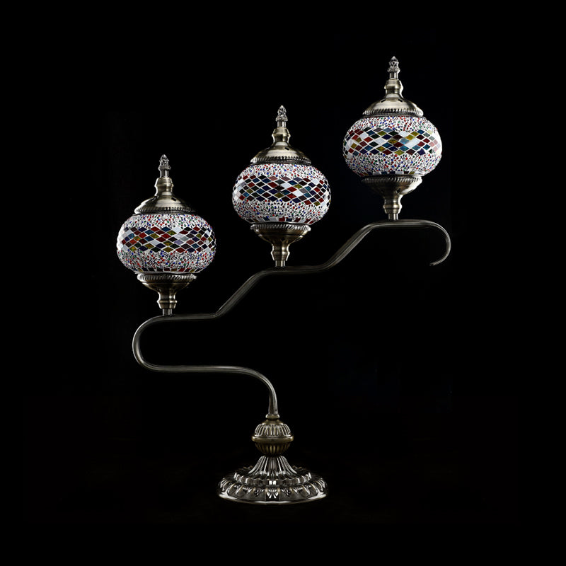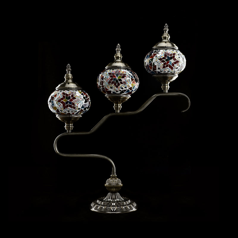 Veilleuse Méditerranéenne en Vitrail à 3 Têtes - Design Tour Rouge/Orange/Bleu