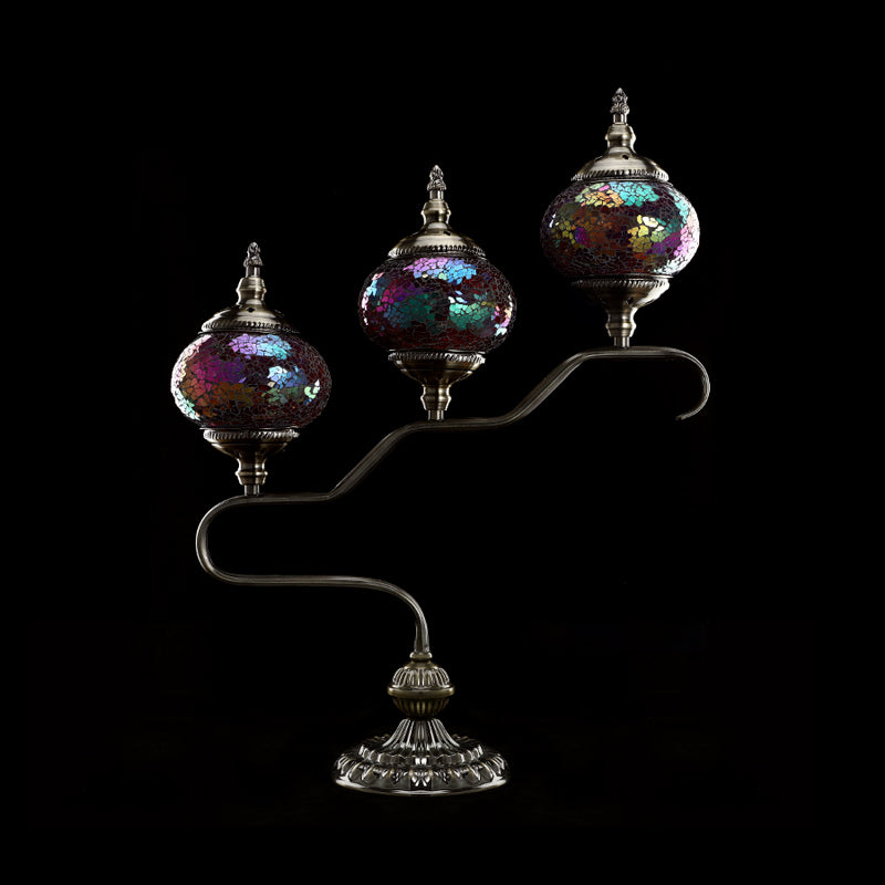 Mediterranean Stained Glass Night Light With 3 Heads - Red/Orange/Blue Tower Design Dark Purple