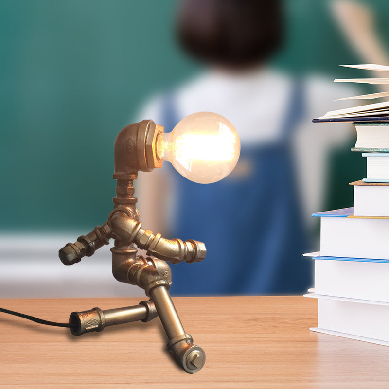 Lampe de table en fer forgé de style antique avec finition en laiton pour café