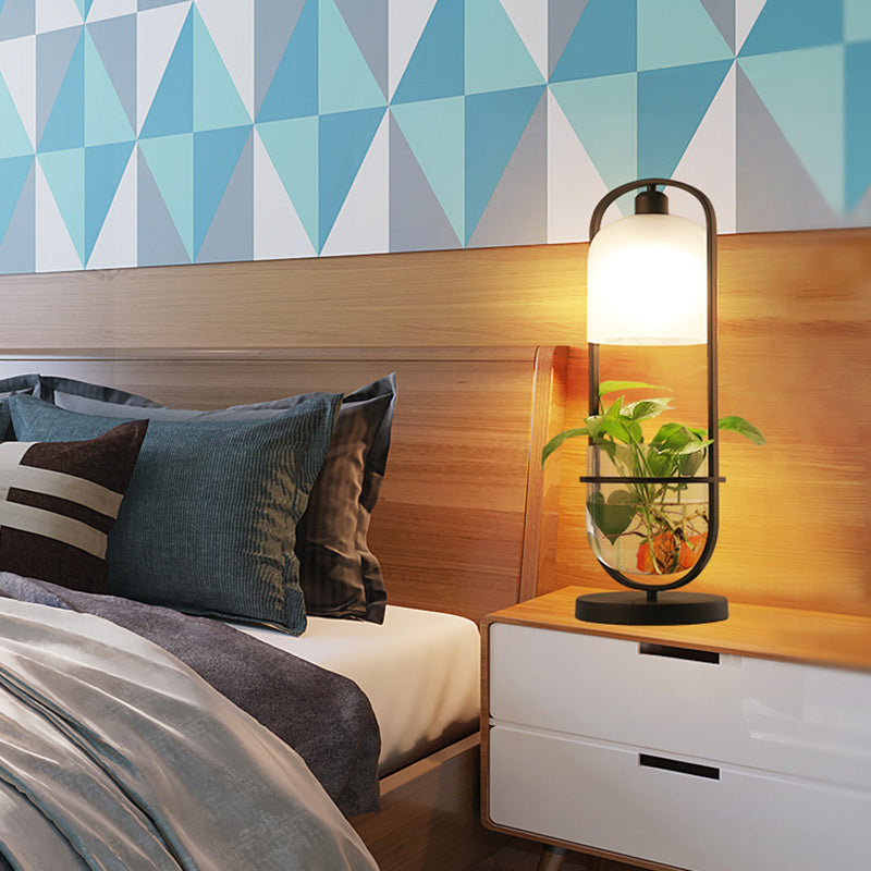 Lampe de chevet LED en métal industriel avec bac à plantes - Design ovale noir pour salon