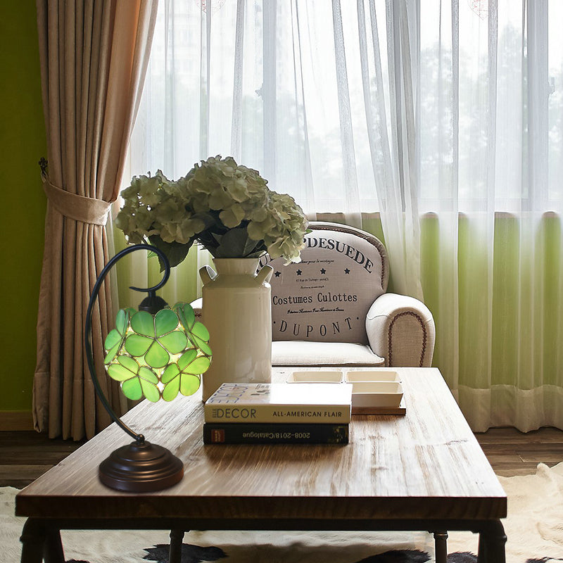 Lampe de table de style Blossom Tiffany - Lampe de chevet en verre beige/rose/jaune à tête unique pour chambre à coucher