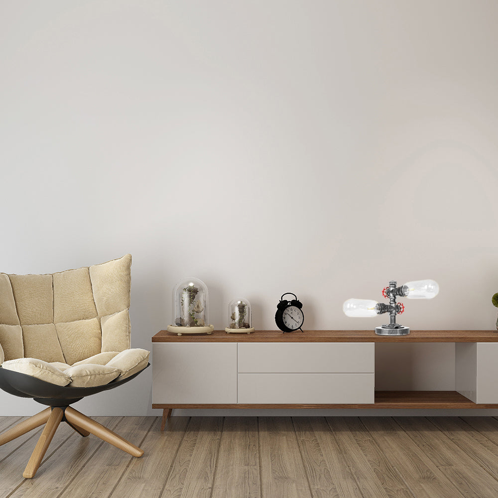 Lampe de bureau industrielle à 2 lumières en verre clair/ambre avec abat-jour capsule - Parfait pour le salon