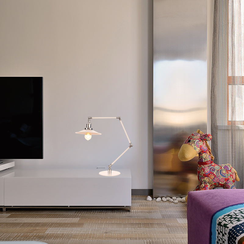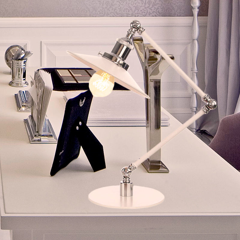 Vintage Adjustable Reading Lamp - Conical Desk Light White Metal 1 Stylish Design 8 Length Arm