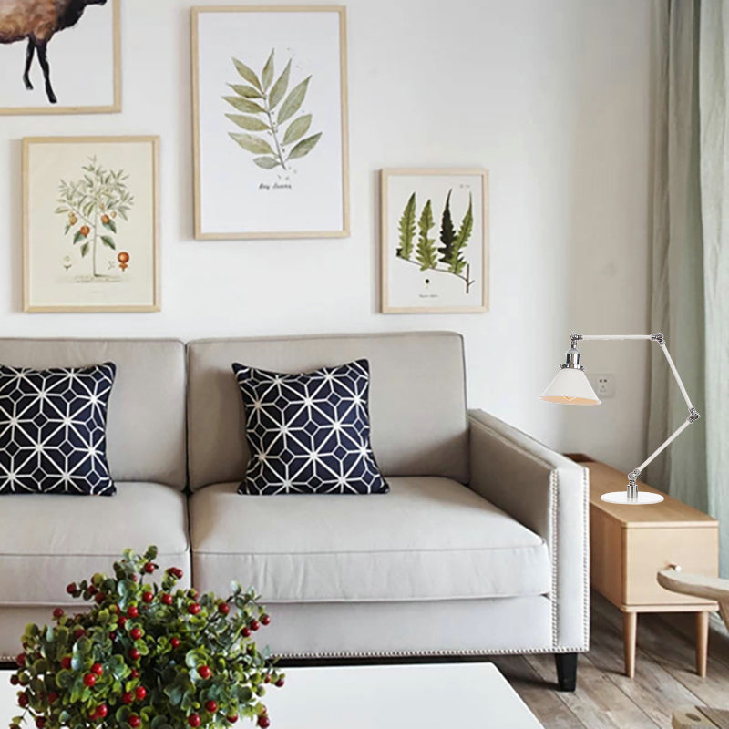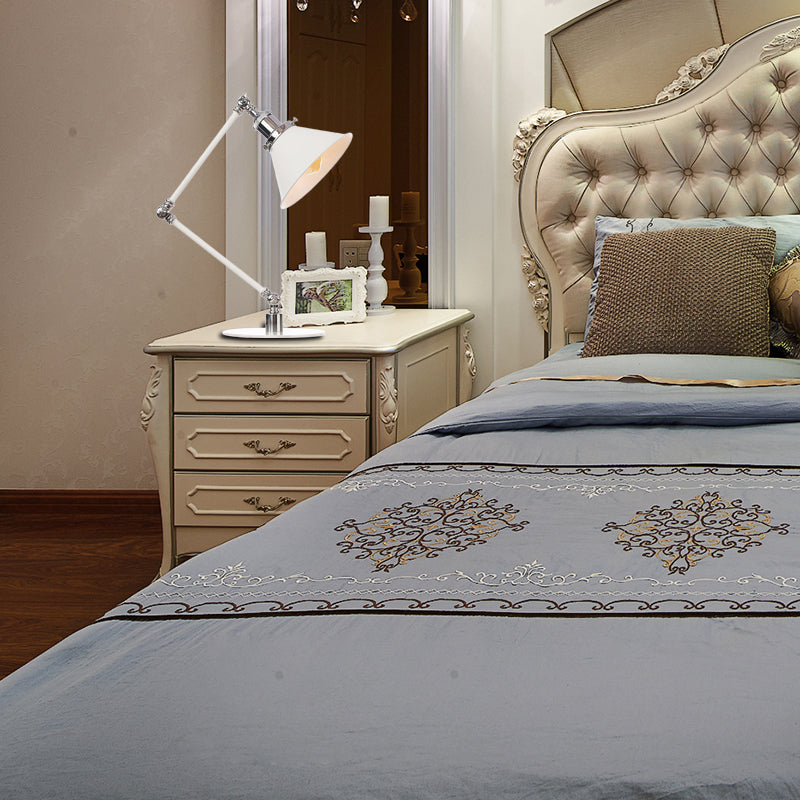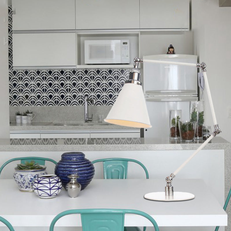 Vintage Adjustable Reading Lamp - Conical Desk Light White Metal 1 Stylish Design 8 Length Arm / A