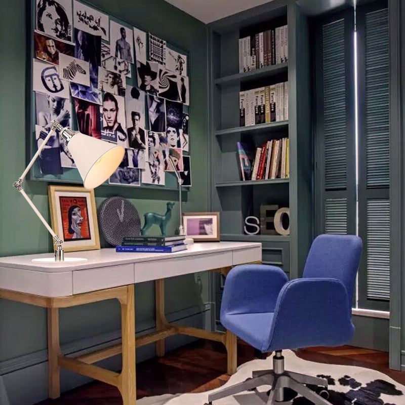 Lampe de lecture réglable vintage - Lampe de bureau conique, métal blanc, 1 lumière, design élégant, bras de 8" de longueur