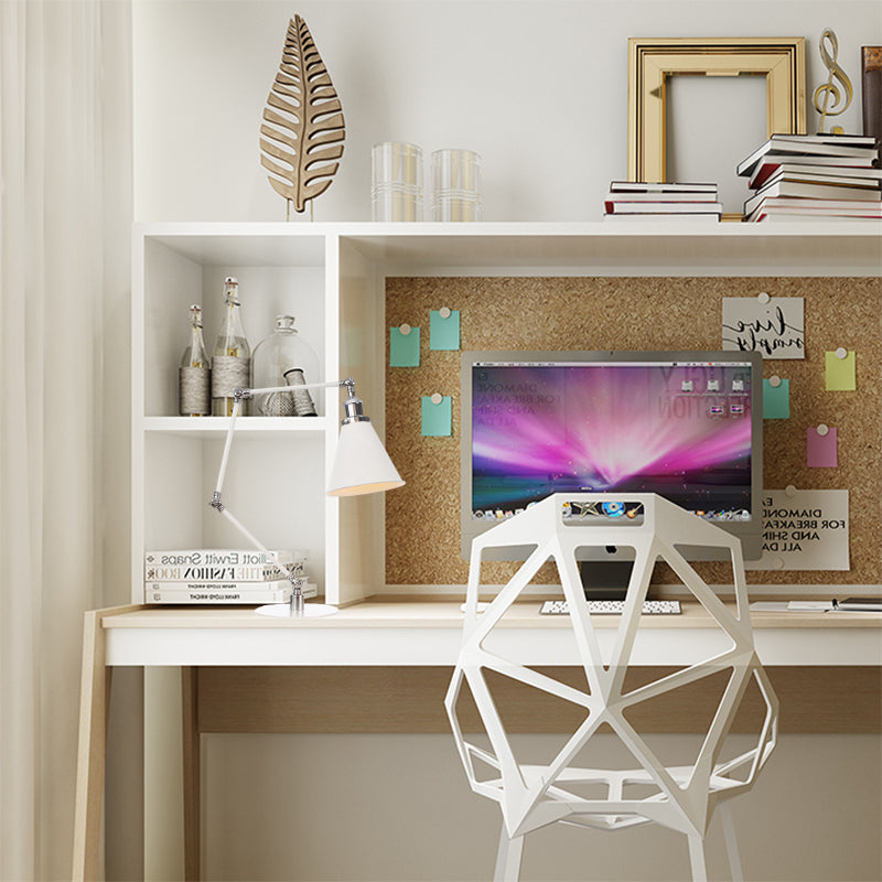 Ce produit est une lampe de bureau conique en métal avec un bras réglable en blanc. Il est conçu dans un style industriel vintage et peut être utilisé avec des ampoules LED, incandescentes ou fluorescentes. La longueur du bras est de 8"+8"/8"+8"+8", et la largeur de la plaque arrière est de 7". Ce produit a une tension de 110 V-120 V et une base d'ampoule E26/E27.