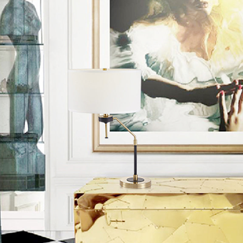 Lampe de bureau blanche moderne avec abat-jour en tissu - Petite lampe de table cylindrique