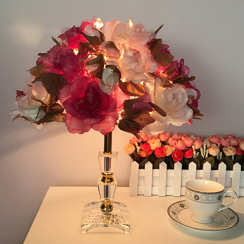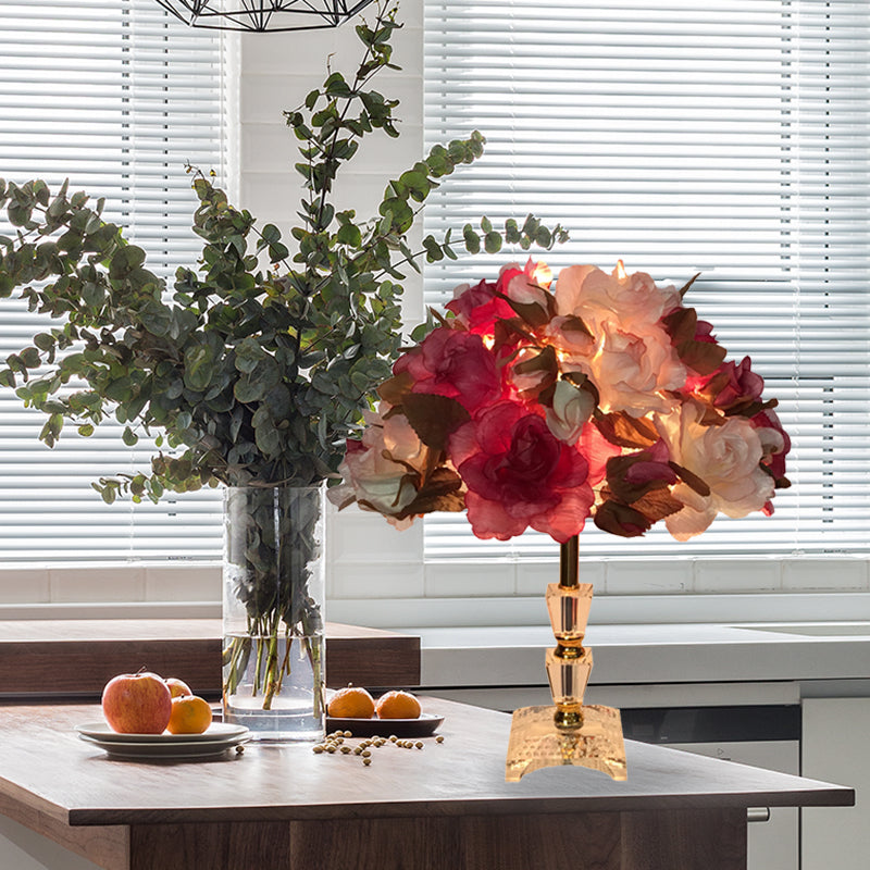 Gold Industrial Living Room Crystal Nightstand Lamp With Floral Night Lighting