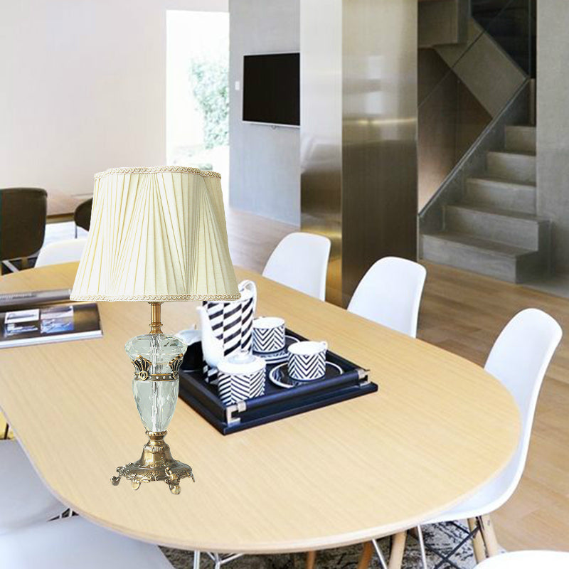 Veilleuse à abat-jour plissé en cristal moderne avec éclairage de table doré