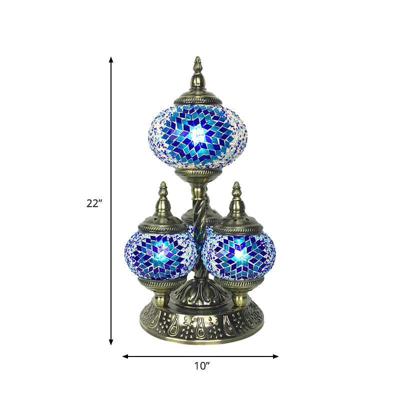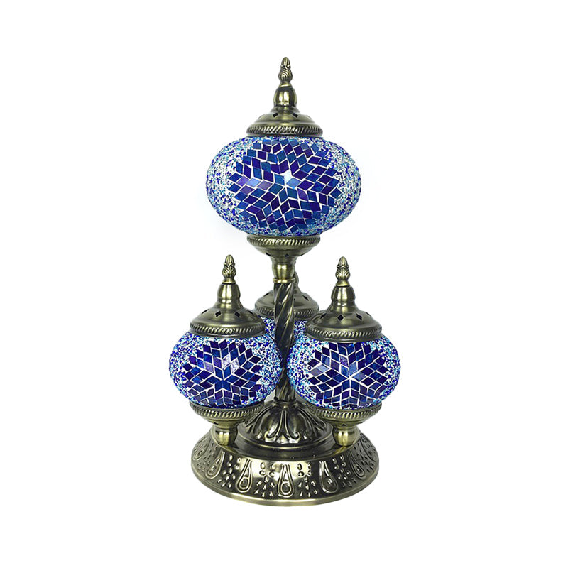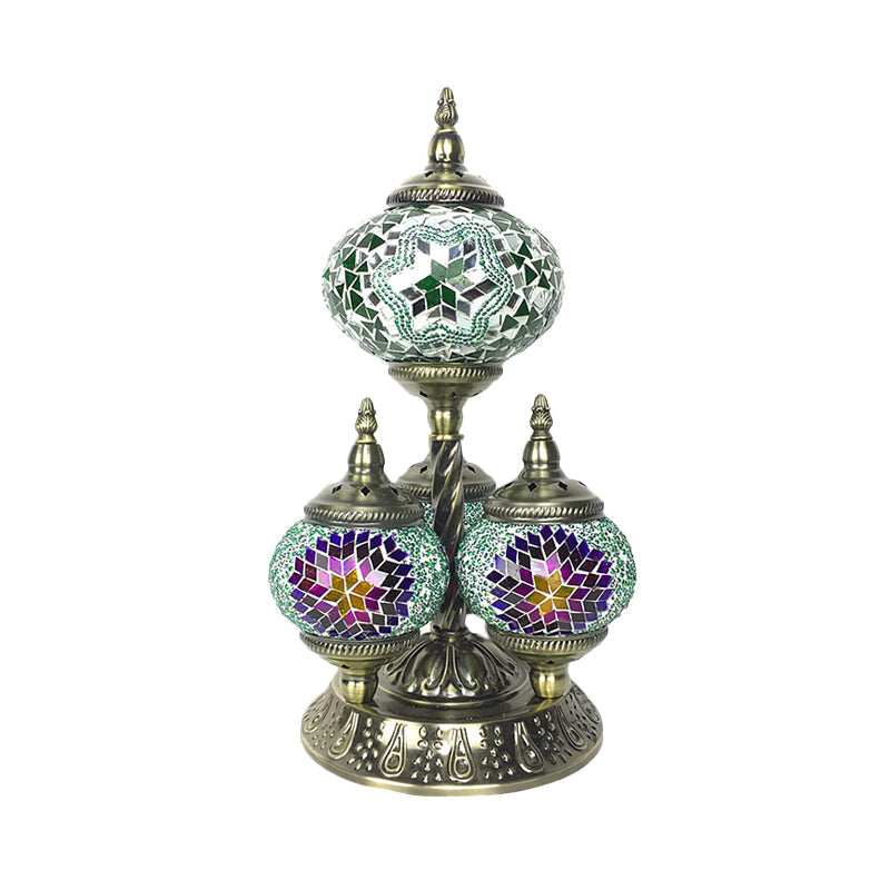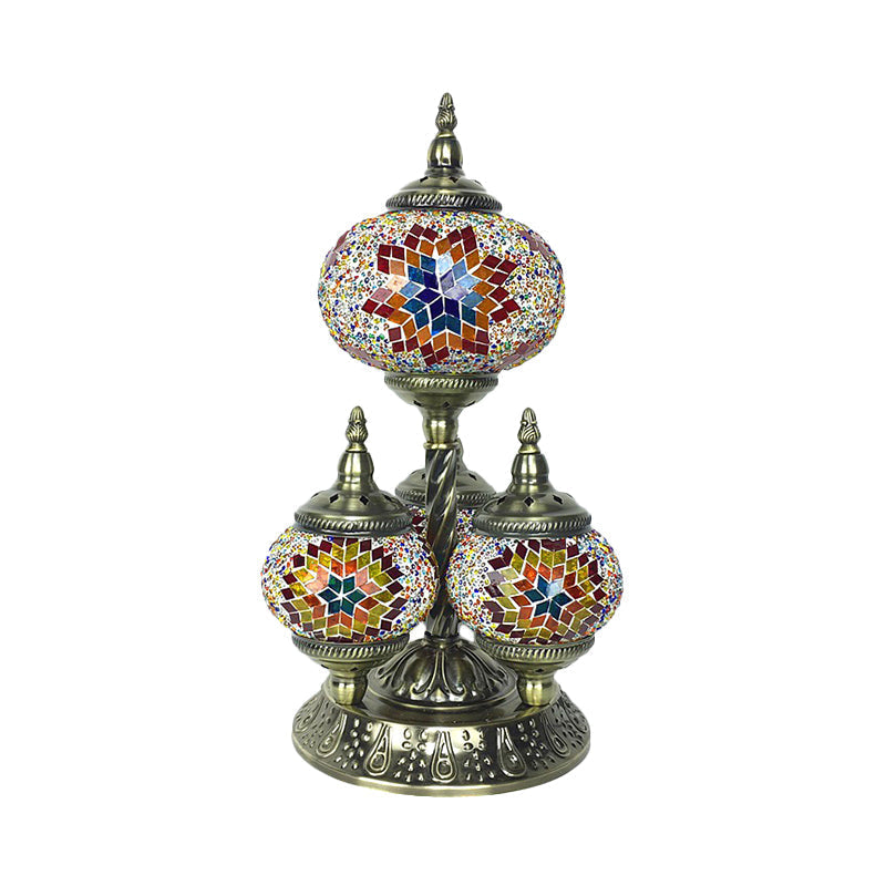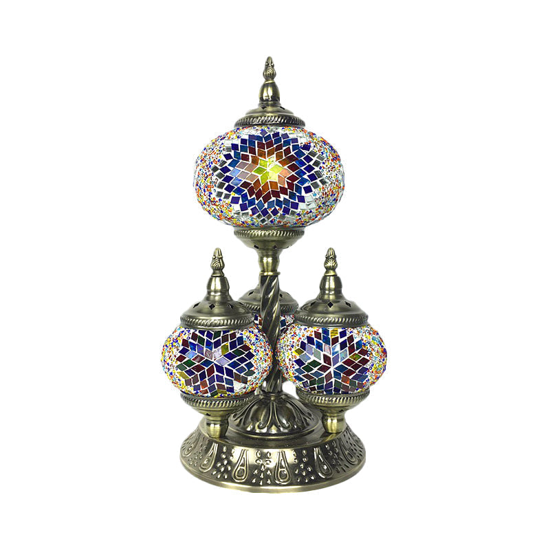 Vintage Stained Glass Table Lamp - Elliptical Study Room Reading Light (4 Heads) In
