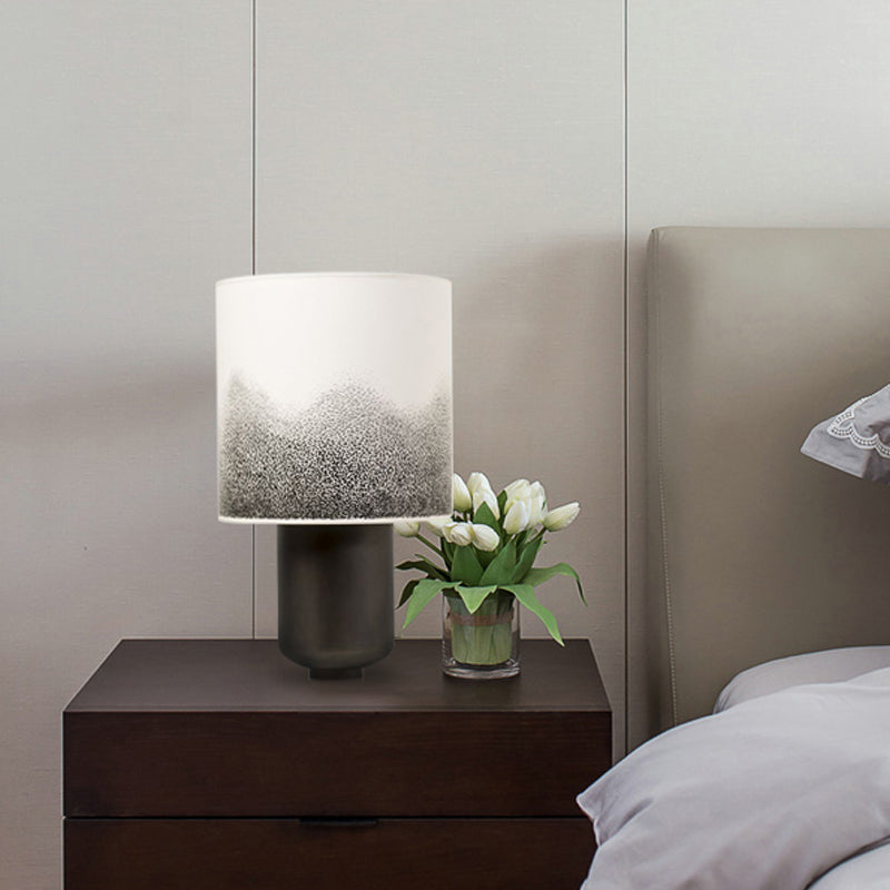 Lampe de table tonneau en tissu contemporain avec base en métal - Éclairage de travail noir - 1 ampoule