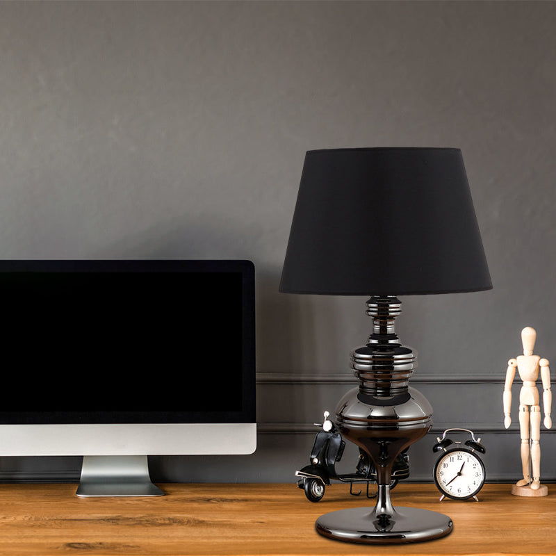 Lampe de Table Conique en Tissu Rustique avec Base Gourde - 1 Ampoule - Noir - Lampe de Table de Chevet de Salon