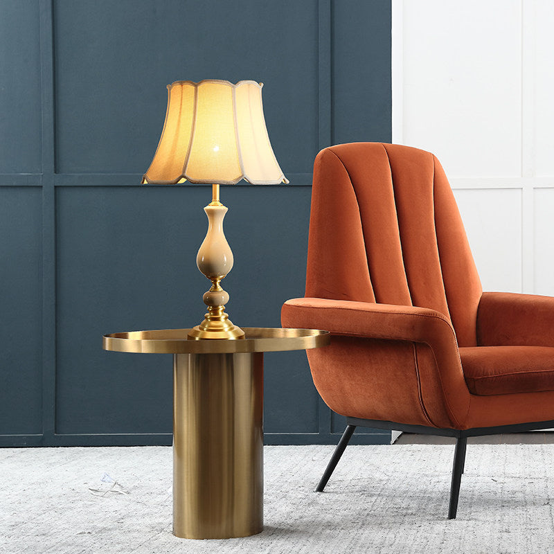 White Fabric Scalloped Bell Table Lamp - Simplicity Design Ceramic Decor
