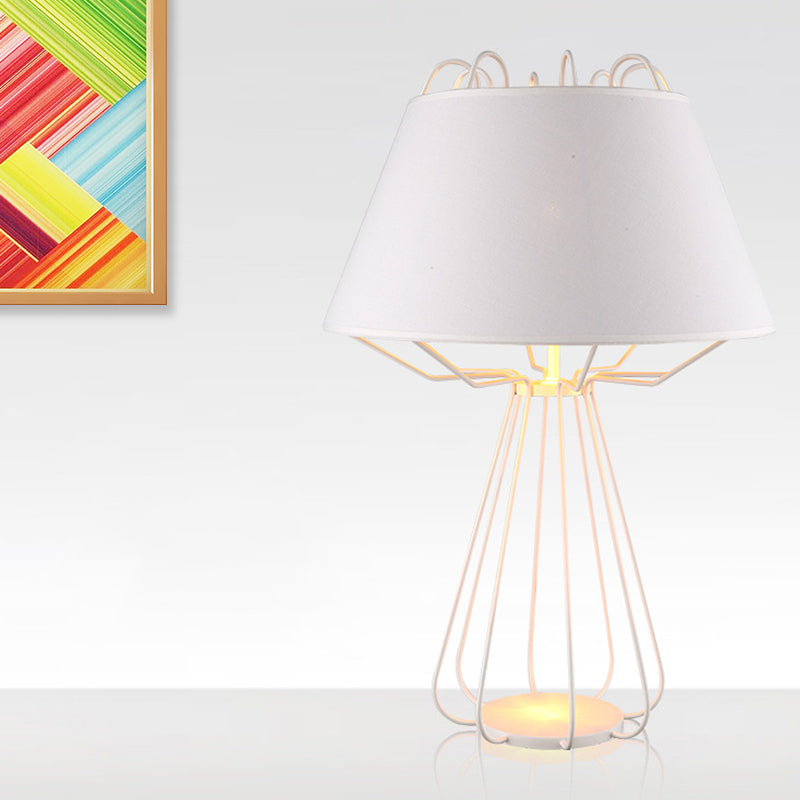 Modernist Iron Nightstand Lamp With Fabric Shade - White/Black Finish 1 Bulb