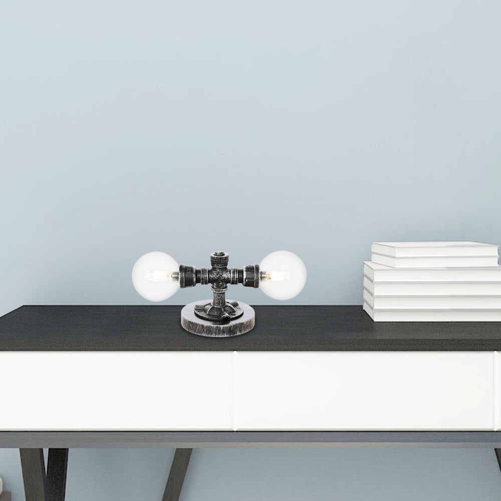 Lampe de table à abat-jour rond argenté antique avec verre transparent/ambre - Style industriel, 2 lumières et base robuste