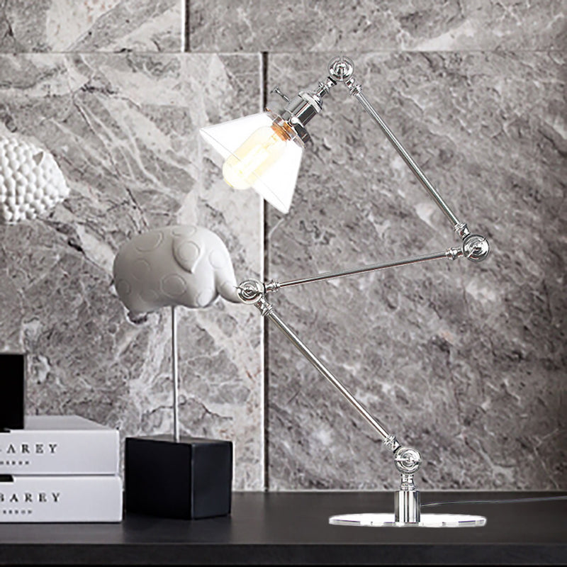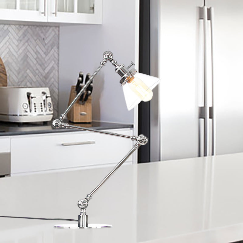 Adjustable Arm Industrial Table Lamp With Clear Glass Shade - Black/Brass Finish Chrome / A
