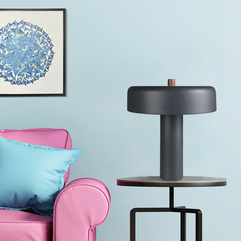 Lampe de chevet à tambour en métal gris moderniste à LED avec cordon enfichable pour chambre à coucher