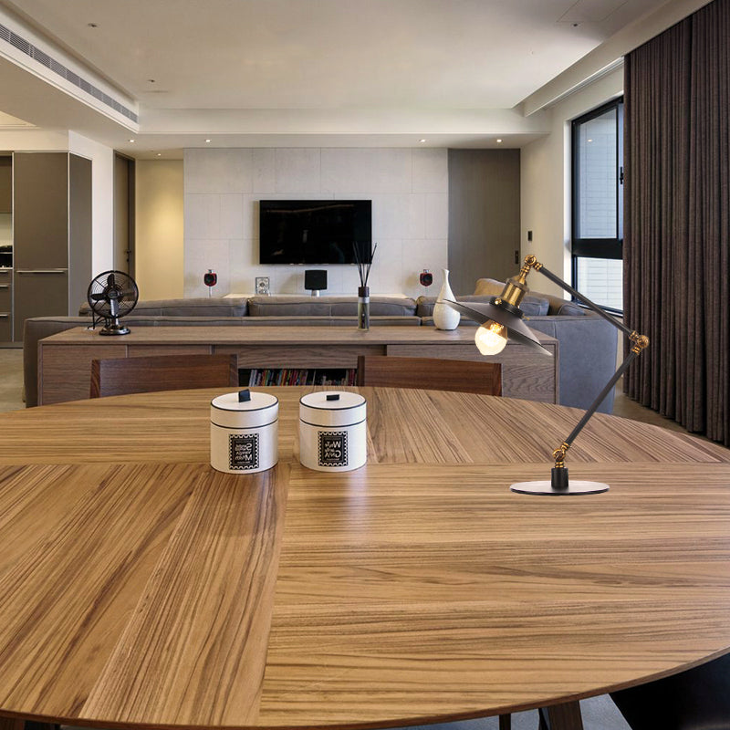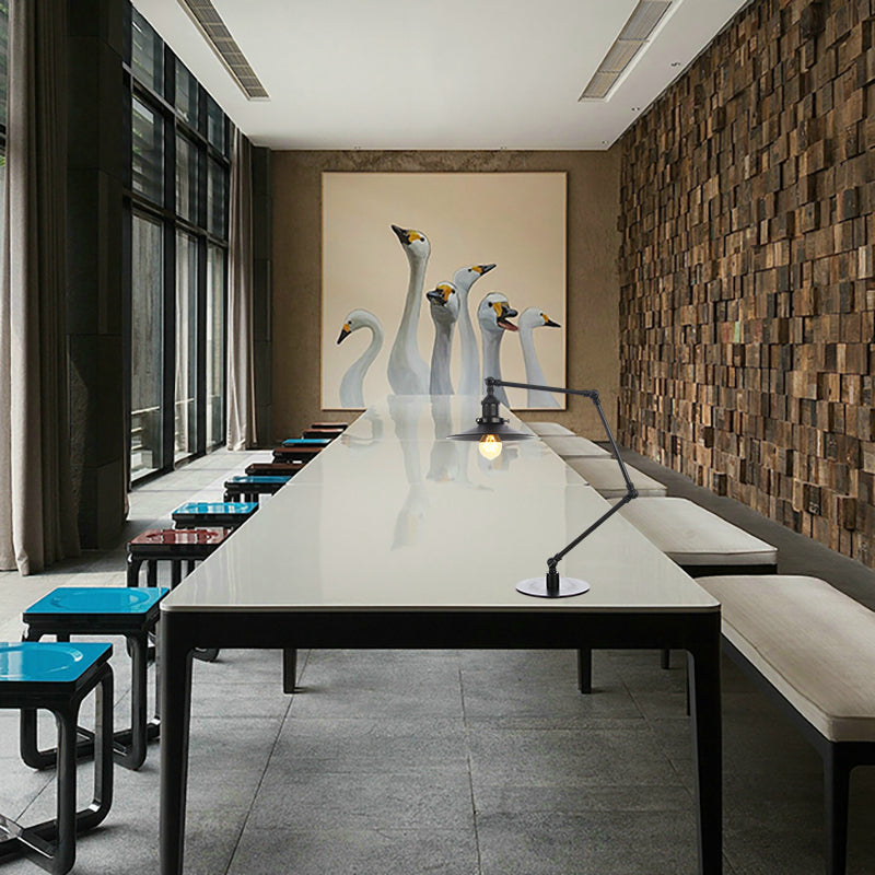Lampe de table en métal à abat-jour évasé - Style ferme, réglable 1 lumière, finition noire/laiton pour éclairage de chambre