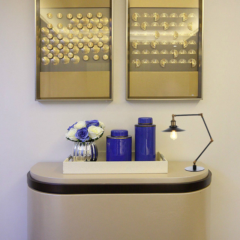 Flared Shade Metal Table Lamp - Farmhouse Style Adjustable 1 Light Black/Brass Finish For Bedroom