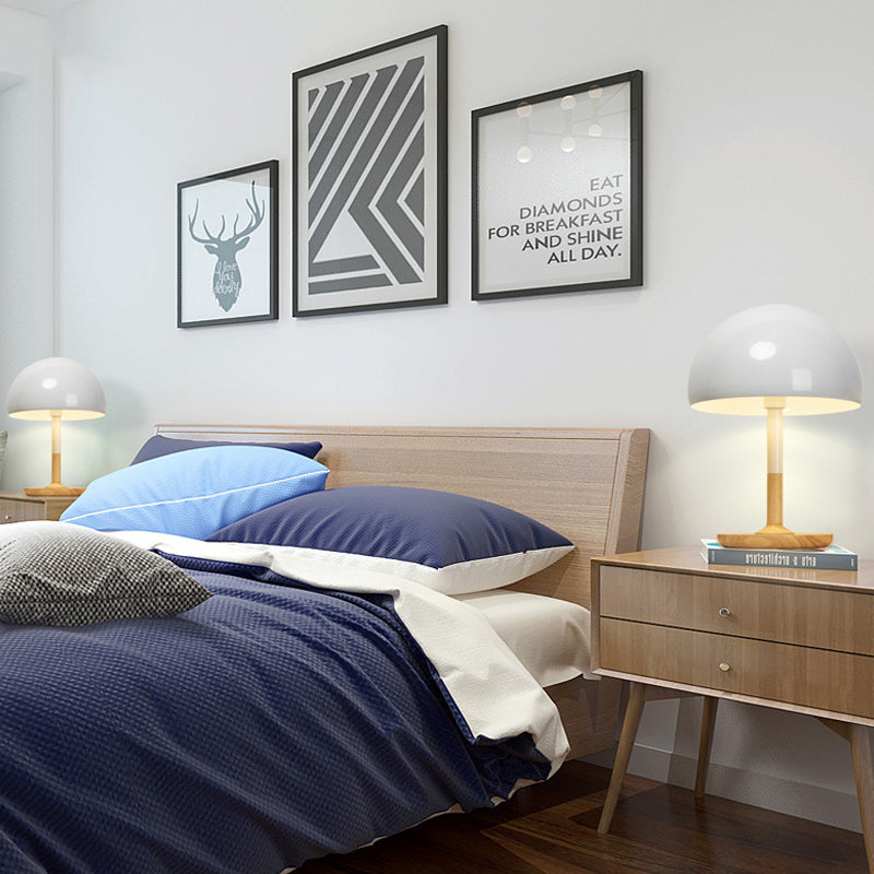 Lampe de Bureau Moderne en Métal à 1 Tête, Lampe de Table Blanche - Socle Circulaire en Bois Beige