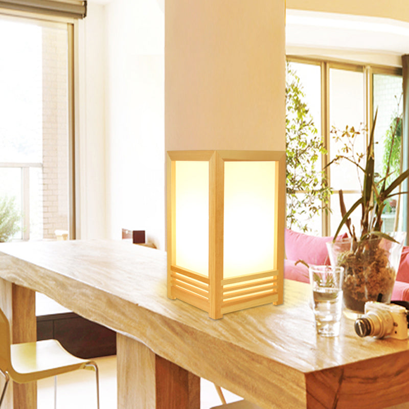 Petite lampe de table rectangulaire en bois clair pour salon moderne - Beige
