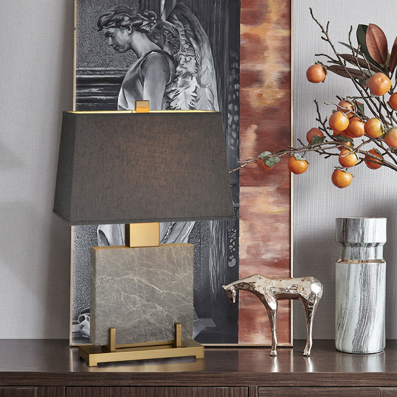 Lampe de lecture trapézoïdale grise moderniste avec abat-jour en tissu - Éclairage de travail à 1 ampoule