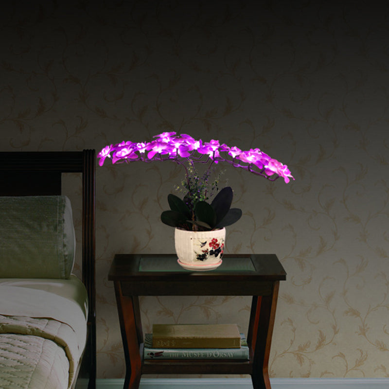 Lampe de chevet LED en métal industriel - Design de plante en pot marron pour table de nuit de chambre à coucher