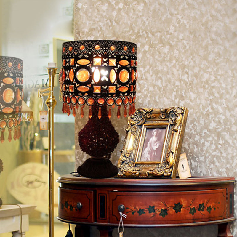 Lampe de table de chevet cylindrique en métal rouille art déco - 1 ampoule éclairage de salon