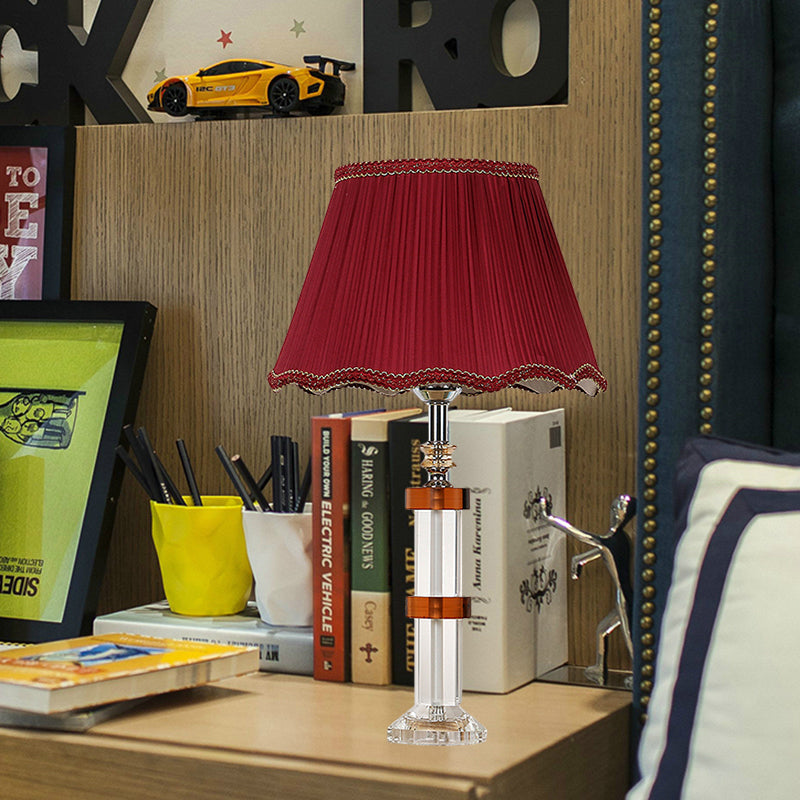 Lampe de chevet moderne en cristal clair - Design festonné, abat-jour rouge, lampe de table de chambre à 1 ampoule