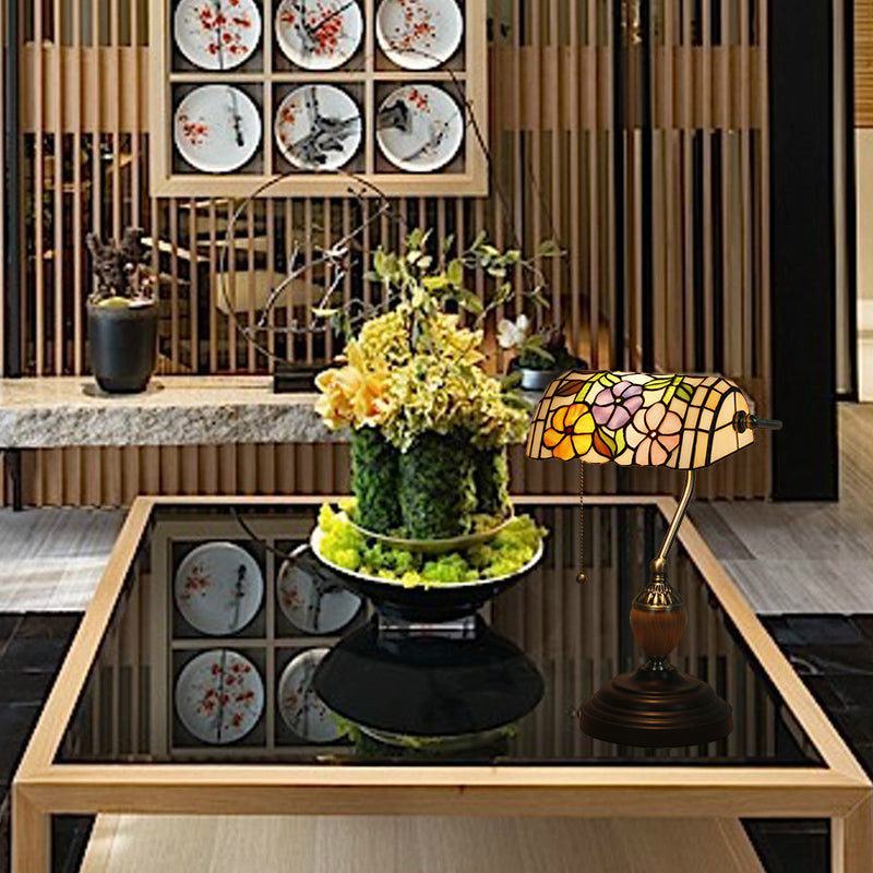 Tiffany Style Stained Glass Nightstand Lamp - Single Head Brass Table Light For Bedroom / Peony