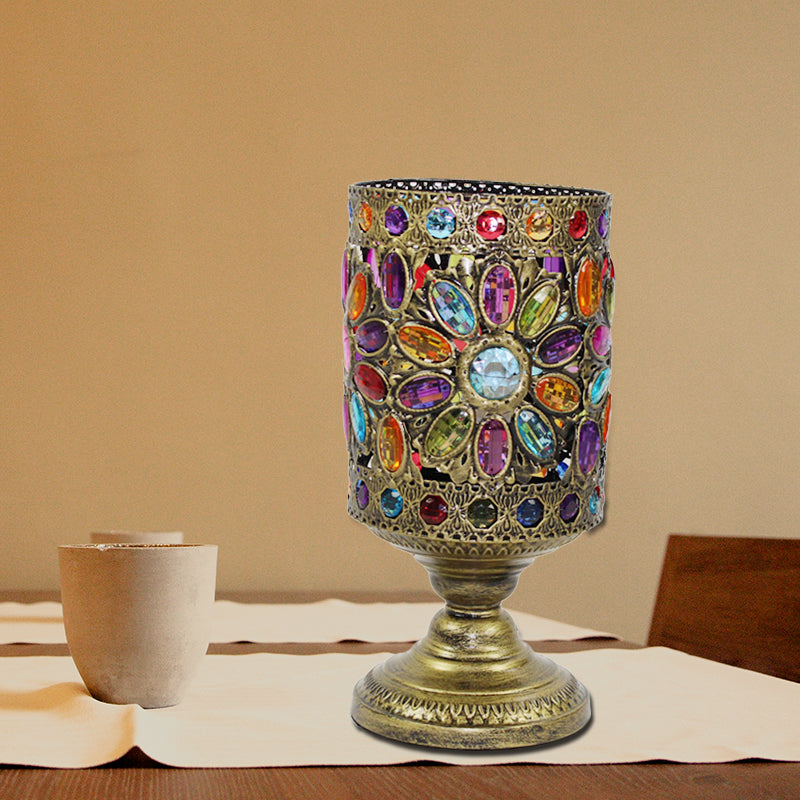Lampe de chevet classique en métal en laiton pour salon - Design cylindrique avec 1 ampoule