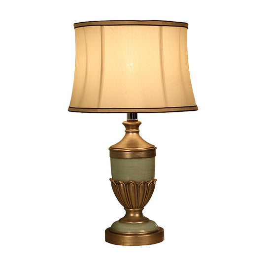 Vintage Drum Desk Lamp With Fabric Night Table Lighting - 1 Head Black/Brown/Green Pot Base