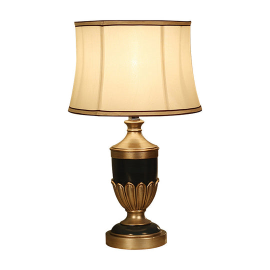 Vintage Drum Desk Lamp With Fabric Night Table Lighting - 1 Head Black/Brown/Green Pot Base Black
