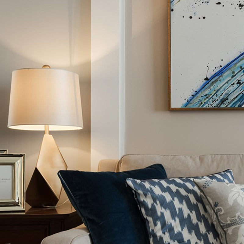 Veilleuse géométrique blanche - Éclairage de table en métal de luxe avec abat-jour en tissu tonneau