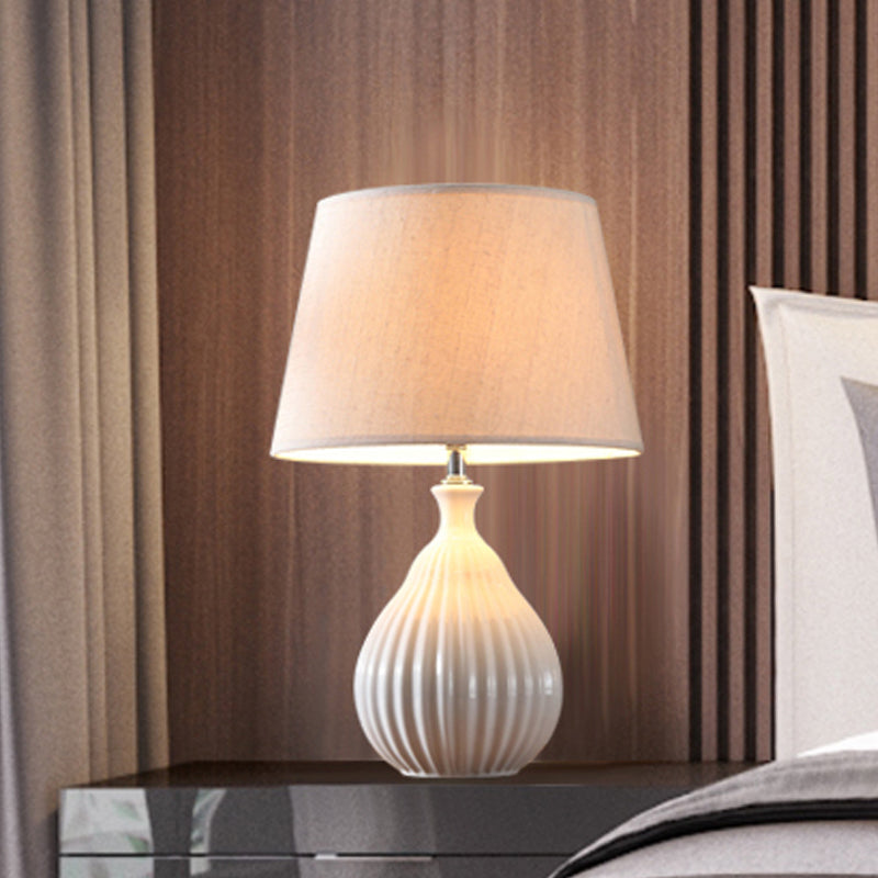 Minimalist White/Green Teardrop Night Light With Cone Fabric Shade White