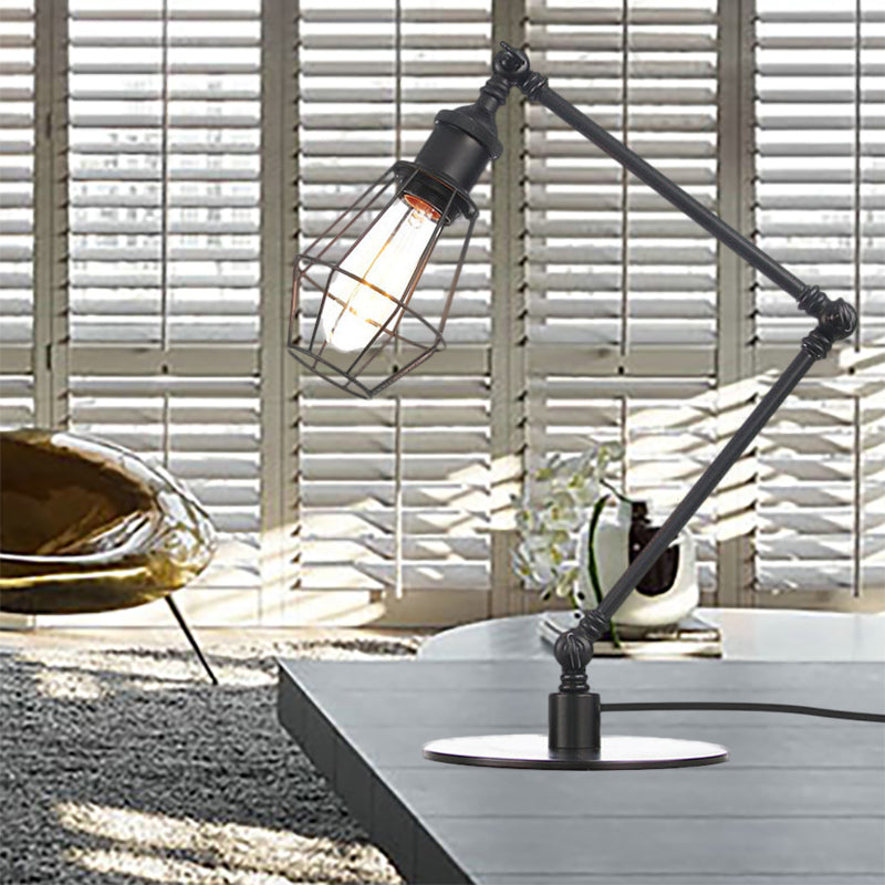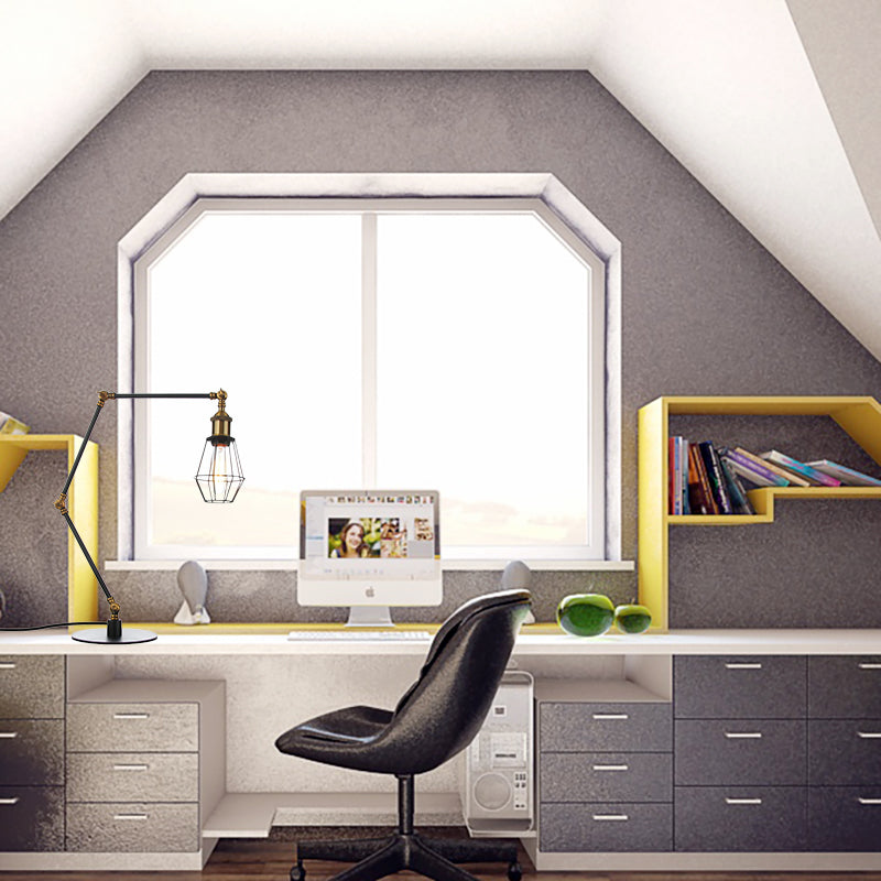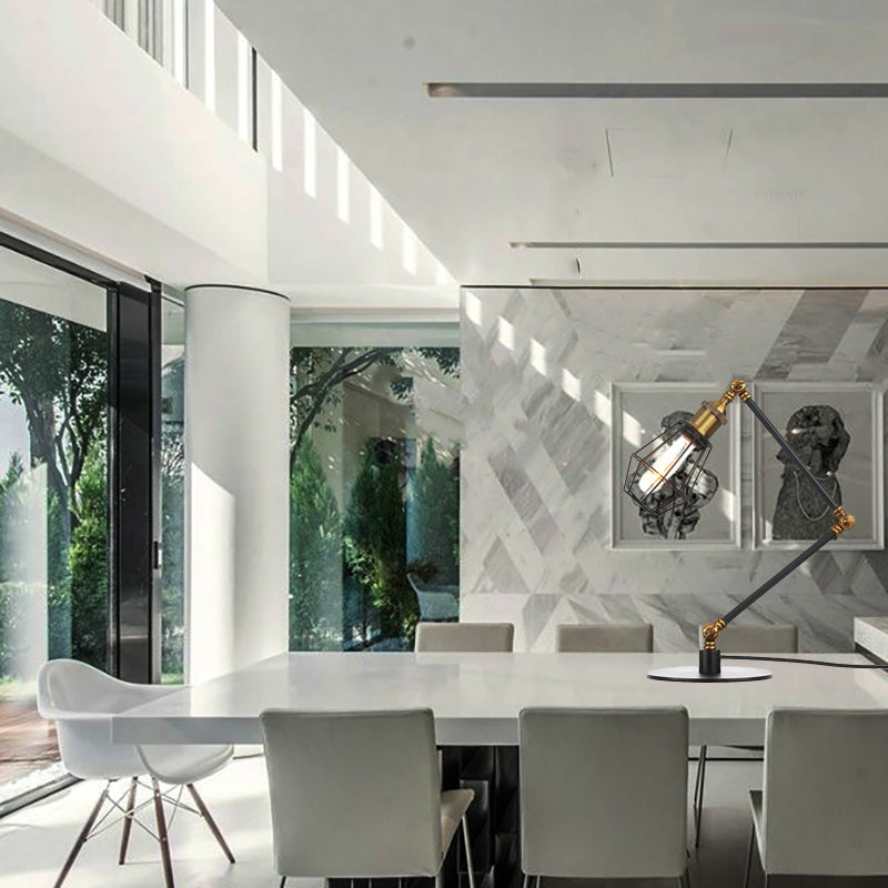 Industrial Metal Table Lamp: Adjustable Arm Black/Brass Finish