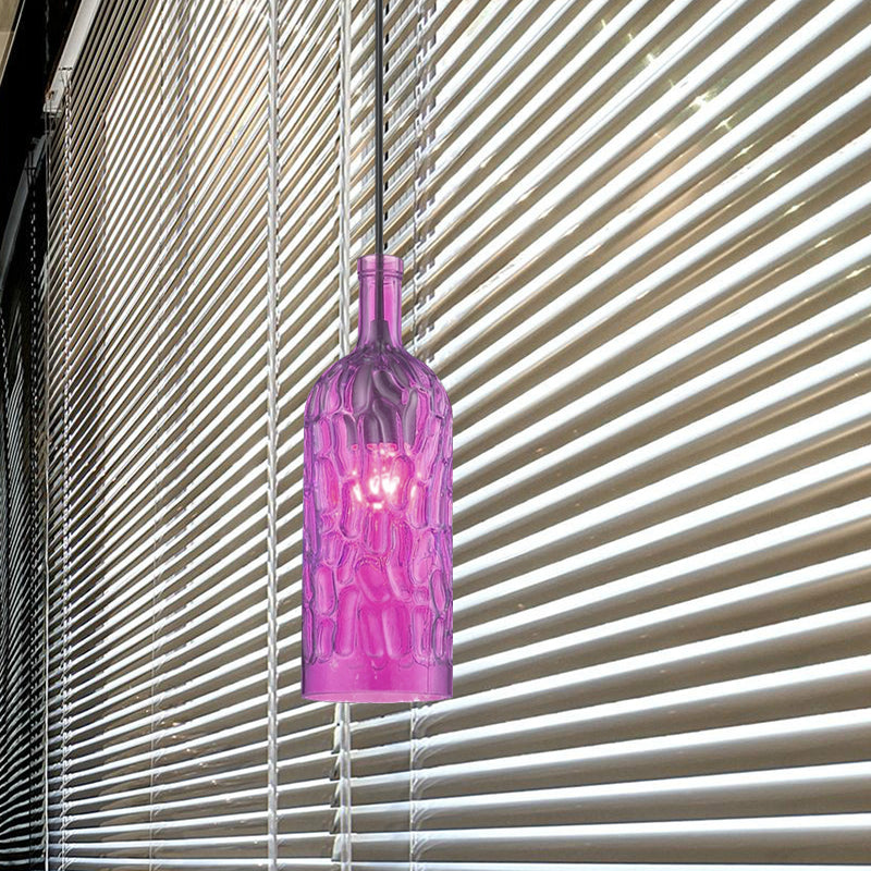 Suspension vintage en verre jaune/marron avec abat-jour en forme de bouteille alvéolée - Luminaire à 1 lampe pour salon