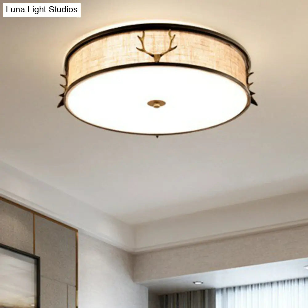 Nordic Foyer Charm : plafonnier à tambour en tissu avec accents décoratifs en bois de cerf