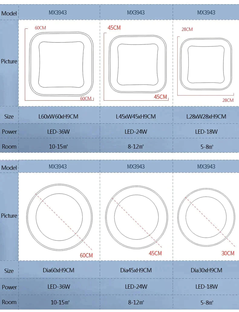 Sample Modern Led Ceiling Lights For Living Room Bed Gray / Square L28Xw28Cm Warm White No Remote