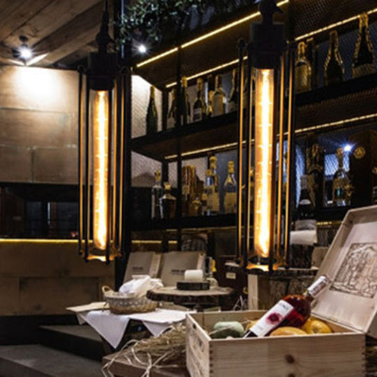 Suspension industrielle en forme de cage en fer noir - Plafonnier cylindrique à 1 ampoule pour bars
