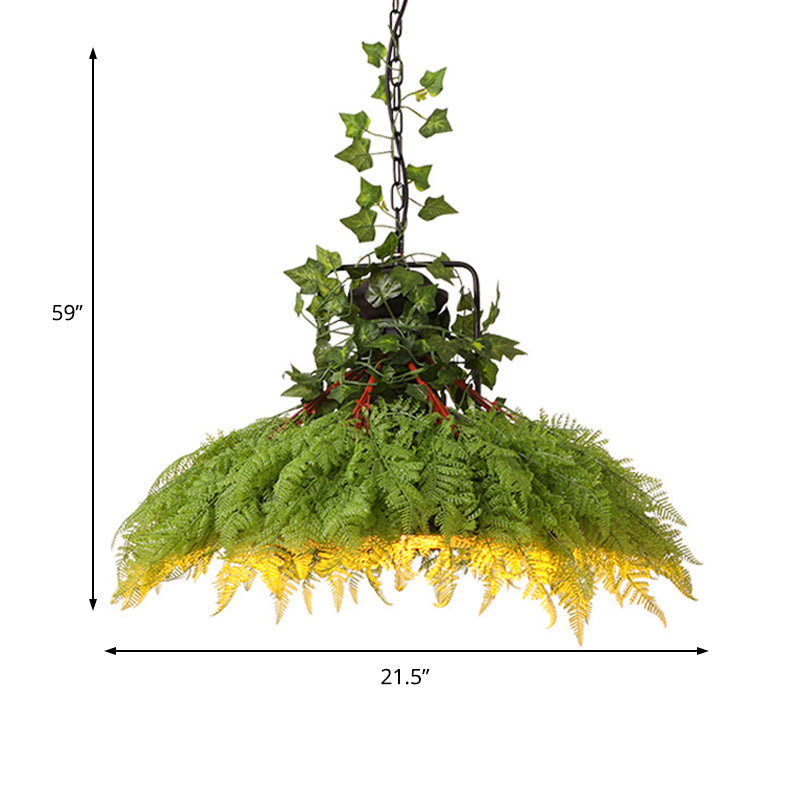 Lampe suspendue à LED en forme de plante verte antique, tête en métal, éclairage vers le bas - 14"/18"/21,5" de large pour restaurant