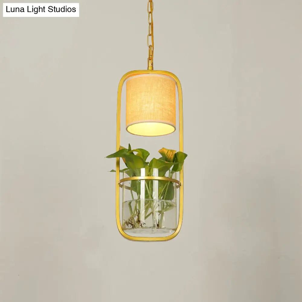 Luminaire suspendu rustique à LED en forme de cylindre, tissu noir/blanc/doré, lumière chaude/blanche avec pot de fleurs